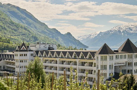 Essa é uma propriedade verdadeiramente única e encantadora. O hotel está situado ao longo da Fiorde de Hardanger e apresenta vistas sobre o Glaciar Folgefonna que parecem ter saído de um quadro. Nosso grupo desfrutará de inesquecíveis duas noites de hospedagem em quartos com vista para o fiorde e que contarão com jantares incluídos no restaurante principal do hotel.